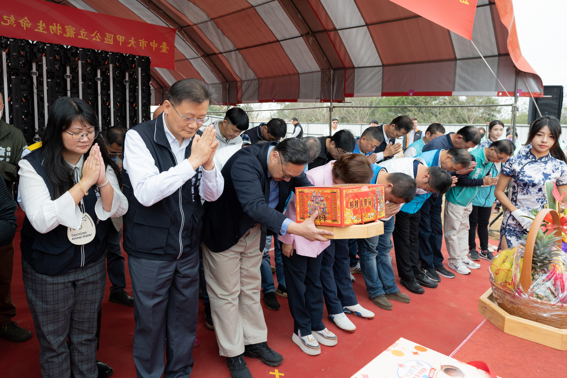 ※今日活動,感謝立法委員楊瓊瓔、市議員楊啓邦、市議員施志昌、前市府顧問蔡璧如、大甲區區長顏金源、頂店里長黃安鎮、岷山里長林清良、臺中市生命禮儀管理處周威昌館長、東昇工程顧問有限公司劉美旭總經理、胡榮俊建築師事務所林宜萱設計師、勇輝營造股份有限公司高永鋒董事長、臺中市獸醫師公會石金生理事長、臺中市獸醫師公會楊倩茹理事、中亞環保工程股份有限公司張耀文副總經理親臨指導;並感謝副院長江啟臣、立法委員陳清龍、市議員李文傑、王立任、陳本添、黃守達、徐瑄灃、邱愛珊派代表共襄盛舉。
